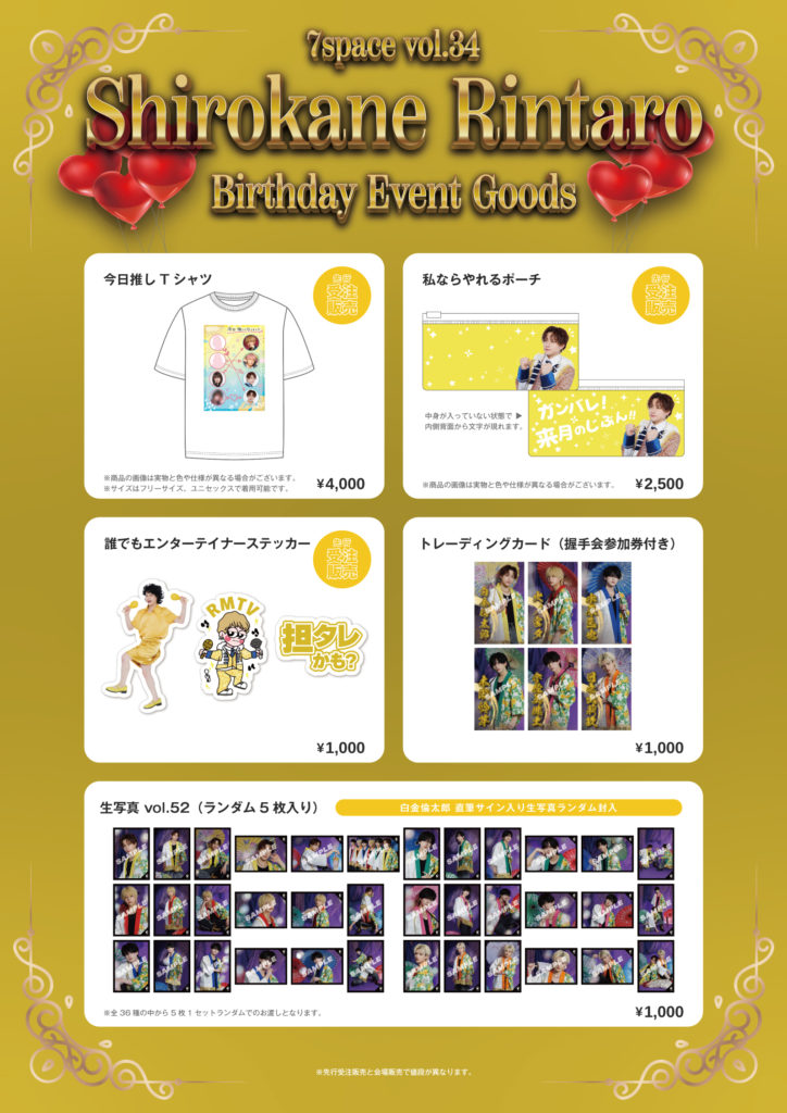 【7space vol.34 ~Shirokane Rintaro Birthday Event~】白金 倫太郎プロデュースグッズ受注販売&会場販売決定!